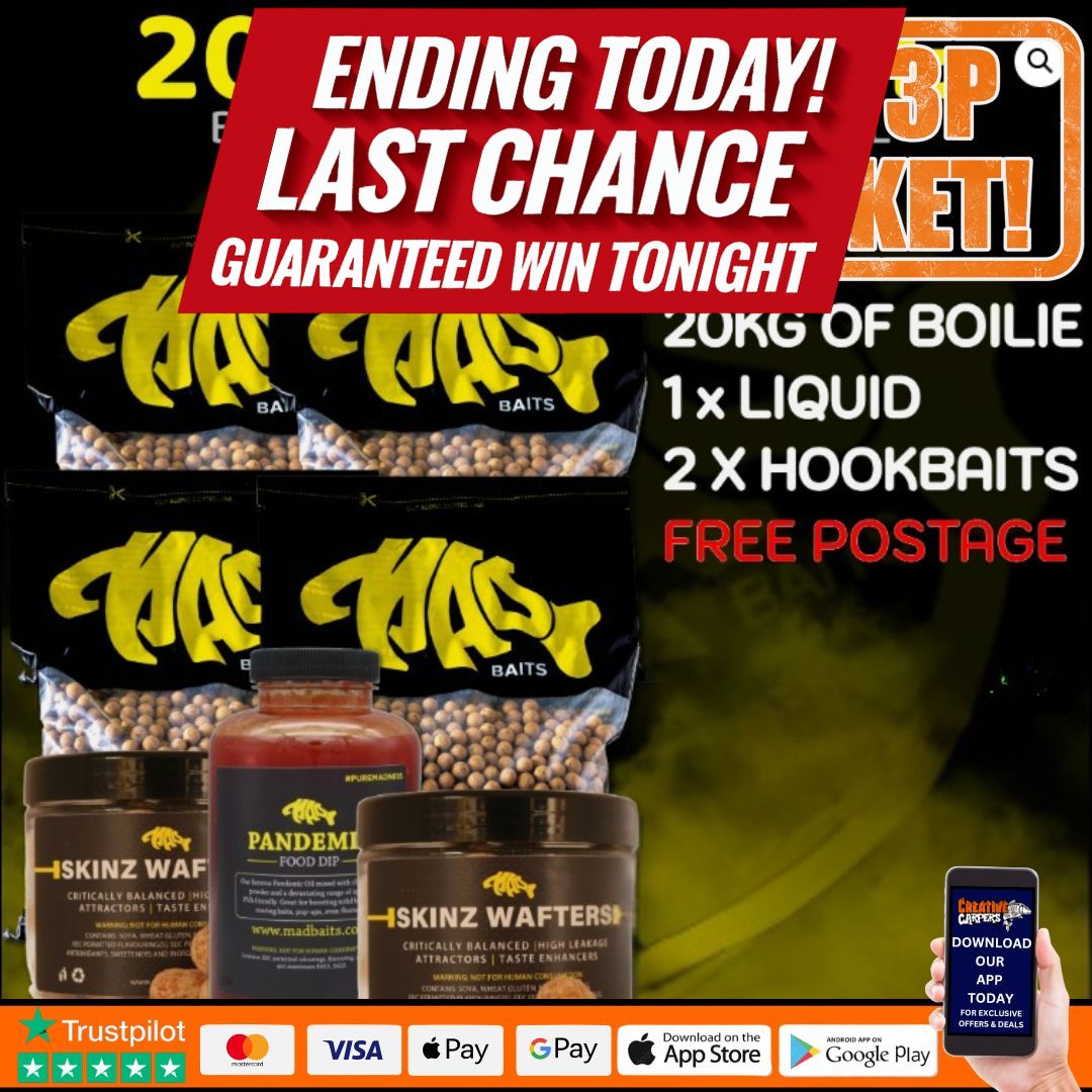 20 Kilos of your choice of boilies in 5 Kilogram splits in either shelf life or freezer,No extra charge for 12mm!!!
