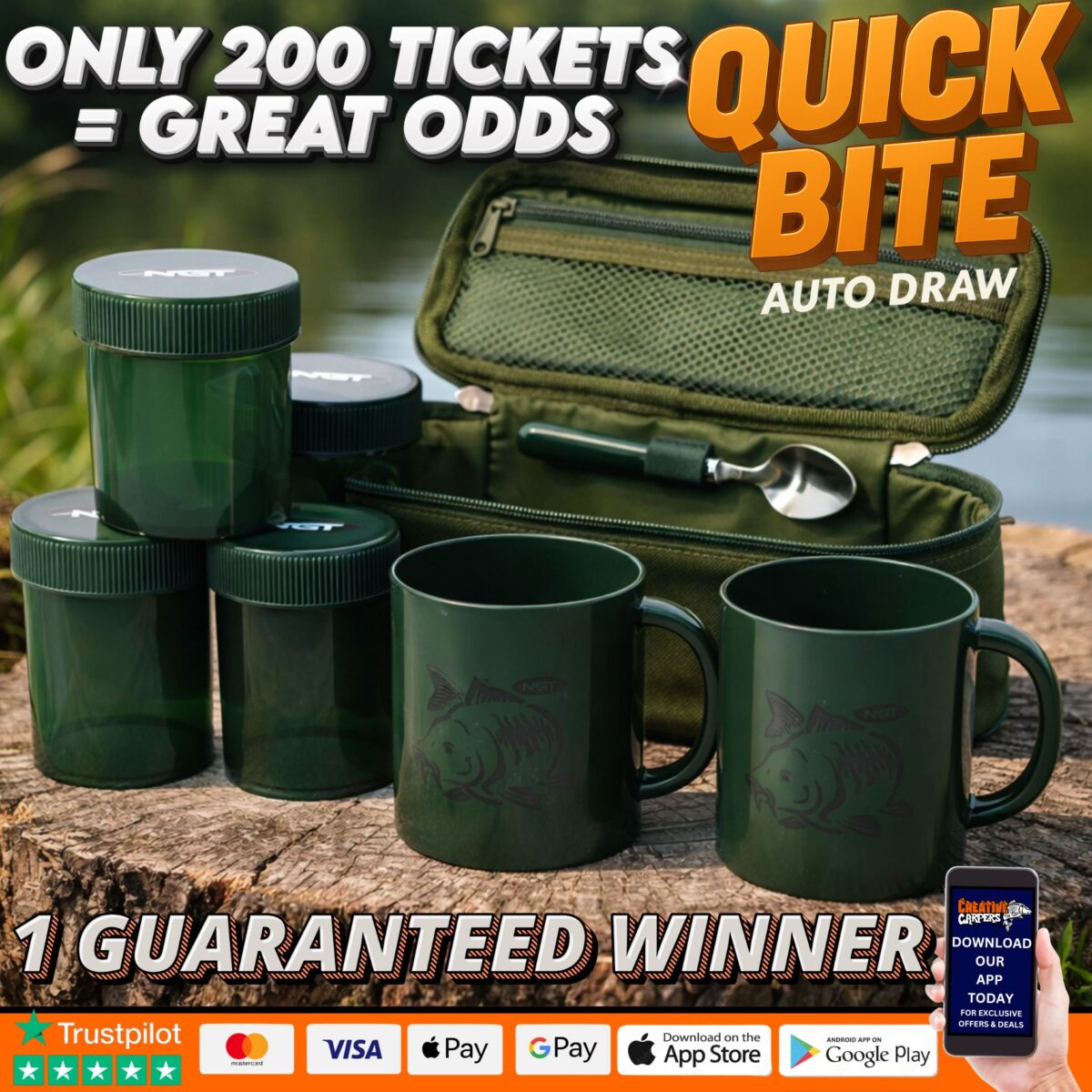 The live draw will take place on the Creative Carpers LTD Facebook page using Google’s random number generator to select the winning ticket number from all Entrants.
