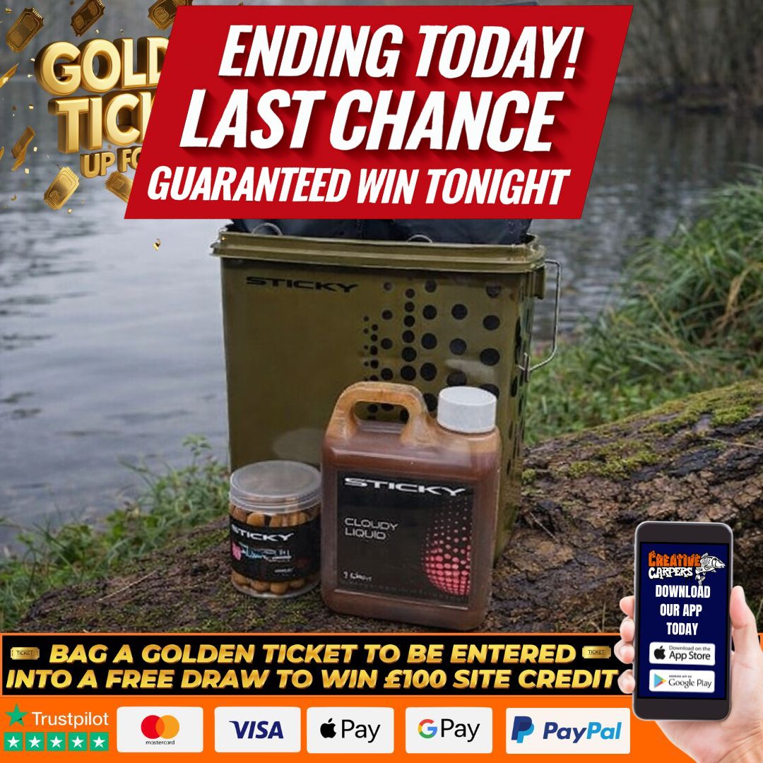 Each deal includes a 13ltr Sticky Bucket, 2.5kg of 16mm Boilies, 1ltr Cloudy Liquid, 900gm Activ Bag Mix, 900gm 4mm Pelletts and a pot of 16mm Pop Ups